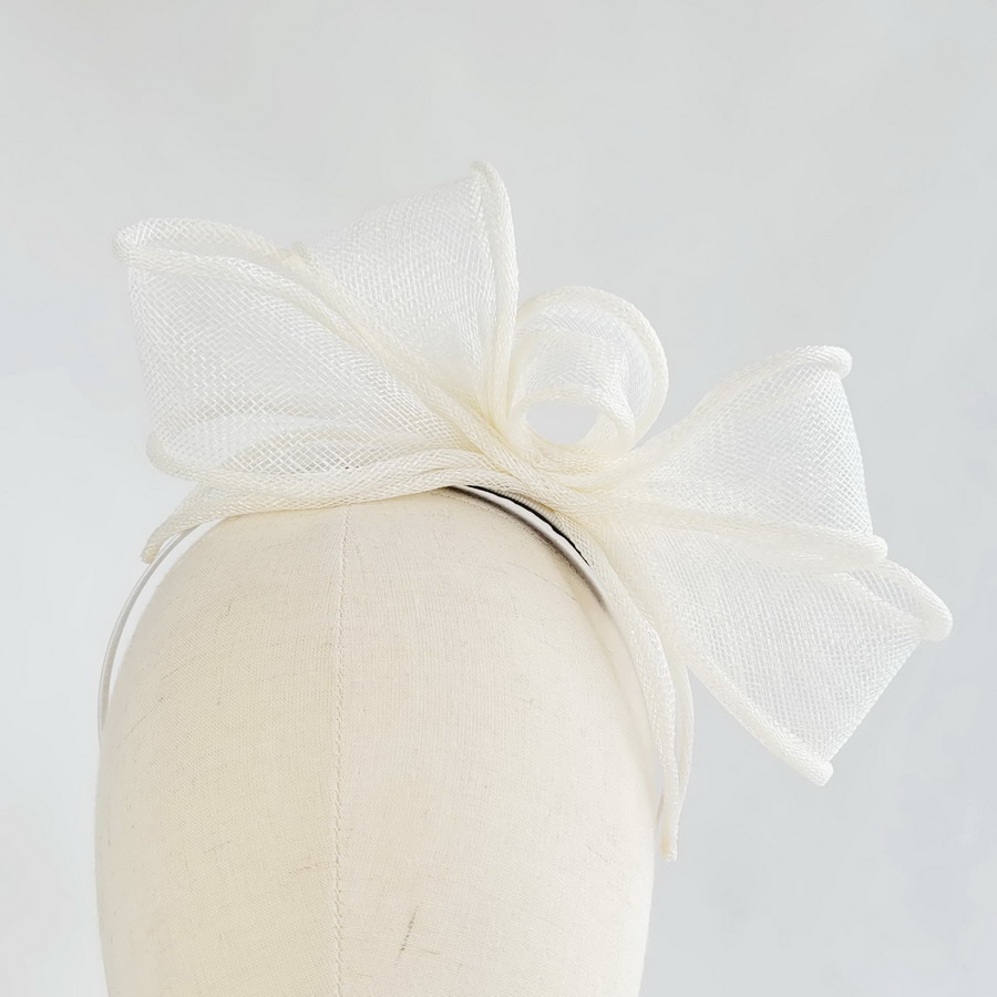 This fascinator is also just right for those who are a little nervous about wearing a hat. Made with rolled edge sinamay, these flowing loops are lightweight and easy to wear.